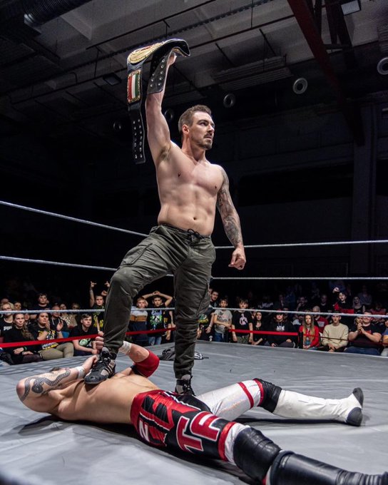 Dave Bradshaw Pro Wrestling Commentator Tihanyi Peter And Justin Wylde Were Not Opponents At Hcw Pankracio Revolution But Still Ended Their Night With One Hand Each On The Revolution Title